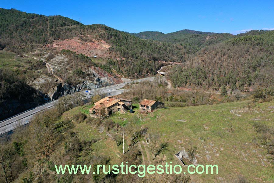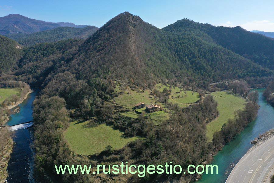 Finca rústica de 134 has (amb 5 has de pastures i resta de bosc), amb masia i paller a reformar. Situada al costat del riu Ter i de la C-17.